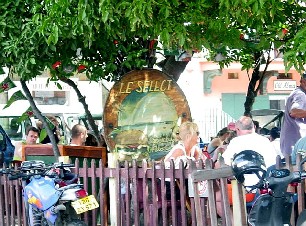 Gustavia is a Riviera* style village and it's all about luxury items, French luxury items and hey no goats running through the village but they are ravaging the hillsides. Every block has a wine store, a jewelry store, a leather goods store, couturier and a half dozen restaurants. Since cruise ships have discovered St Martin the people in the know are now in St Barth. The tightly knit village surrounds the harbor with mooring for normal sized boats such as Shiraz and stern to docking for a number of mega yachts. One very popular outdoor corner bar, Le Select, is purported to be the inspiration for Jimmy Buffett's song Cheese Burger in Paradise.