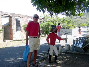 Antigua, now this is the home of the super sailing yachts. Upon arriving in Antigua, we searched for an anchorage in English Harbor and found it a little o vercrowded. The harbor is quite a unique place in that many insurance companies will extend hurricane coverage to include this very protected anchorage. Boats enter the harbor through a small channel and wind their way back into a harbor of small bays surrounded by mangrove trees which play an integral part when securing for a hurricane. Should a storm be headed for Antigua you need only to run the bow of your boat into the trees, tie off the bow in the mangroves and the stern with several anchors hoping that everything will turn out for the better. A lot of people leave their boats tied to the mangroves and go back home for the hurricane season. The harbor's unique configuration made it militarily defensible in years past and the British established their main naval station, once under the command of British naval hero Lord Nelson. The station has been restored and contains a number of shops and restaurants to lure tourists dollar.