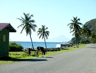 Today the island has a run down appearance intermingled among a crumbling historic fort and hurricane damaged ruins from years gone by. The population is approximately 1600 and guess what the medical school comprises 17% of the head count. Fifty ethnic Chinese add to the population staffing six Chinese restaurants and we can attest to the authenticity of one. Statia has the highest of the volcanic peaks in the region that is called "the islands that brush the clouds". No thanks, we pulled up anchor early the next morning and headed for St Christopher, or St Kitts for short. Nice the way all these islands have nick names.