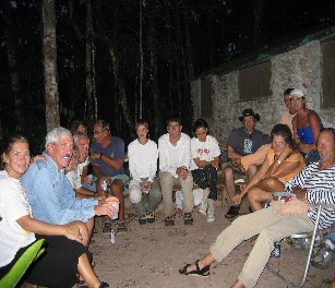 After the assent and a quick lunch of chicken roasted over an open fire, we left for Ucaima a few hours later than planned. This made it necessary to go through some of the rapids after dark but the guides knew where all the big rocks were. A make-shift bed was provided for Rose for our journey back down the river. During the next few days she returned home to Washington DC. We hope that Rose has recovered and that she and her hu sband Dean have pleasant recollections of their trip to Angel Falls!