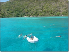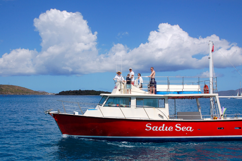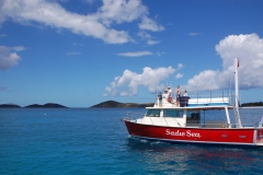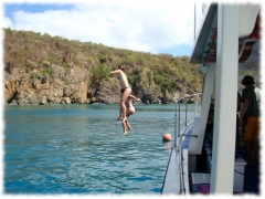 and catching up on some sleep. We volunteered to work on Sadie Sea whenever we were needed and within the week we were aboard with a group of high school kids from Beverly Hills, MI. They were spending mid-winter break at the Virgin Island Enviornmental resource Station (islands.org/VIERS) and we were delighted to work as deck hands and share the snorkeling experience. But other then that we continued to relax and as always make improvements in the boat. It is just subconscious, you can't sit around and not think of things to clean, wax, improve or fiddle with. St Thomas has a Budget Marine and this Sint Maarten base operation has several small pieces for French built boats that you just can't find in the US. So we took the ferry to Red Hook and then the bus to Kmart (which is one of the largest department stores on the island) and then to Charlotte Amalie just to look around.