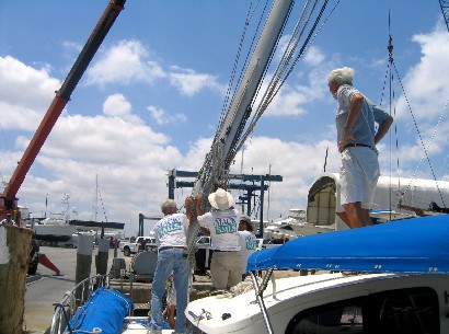 Okay back to business. We are here to have our standing rigging changed and of course while here we will attempt to buy, correct , fix, repair, install a number of other items on our list of things to do that covers three pages in 11 font. Small leaks in the watermaker that could go on forever may as well be attended to, rode markers that have worn off, sound deadening material in the engine room that the original survey suggested I replace, the linear drive on the auto pilot and a list of spares that need to be replenished. Th e list should have been broken down into "things to buy" and "things to do" with a dollar limit on "things to buy". But enter any store and the variety of goods and the quality is unparalleled. Superstores abound and US retailers lead the world in competitive prices. You find yourself buying things just because you can't find them in other ports. Publix grocery store carries 40 varieties of hot dogs and in Bonaire you can get one brand of frozen chicken franks. Well now you can see where our budget has taken our idea of fine dining.