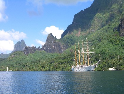 Moorea may be the best example of what you anticipate the South Pacific to be. It was our first shallow anchorage since we have been in the Pacific, we could actually see the sandy bottom in the not too crowded anchorage. We skipped Cooks Bay and headed for Opunohu. It was blowing like stink when we arrived so we chose the anchorage just east of the cut. There is an anchorage to the west which was closer to the attractions we enjoyed but offered little protection from the fronts that were blowing through. Not far from this western anchorage you will find six to eight huge stone tiki's in about six feet of water. As the story goes when the missionaries came they insisted that all tikis be destroyed. These survivors were taken to shallow water with a sandy bottom and deposited. It makes you think that the local inhabitants were stashing these away in case Christianity didn't work out as they had hoped. Anyway they are still there.